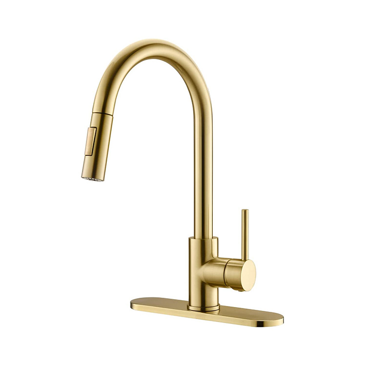 Yanasi® Brushed gold ktichen mixer surface treatment polesan, bahan keramik, cocok kanggo hotel, desain gaya tradisional, dek dipasang gagang tunggal, gaya spool tradisional, masa garansi 3 taun, welcome kanggo takon babagan produk.